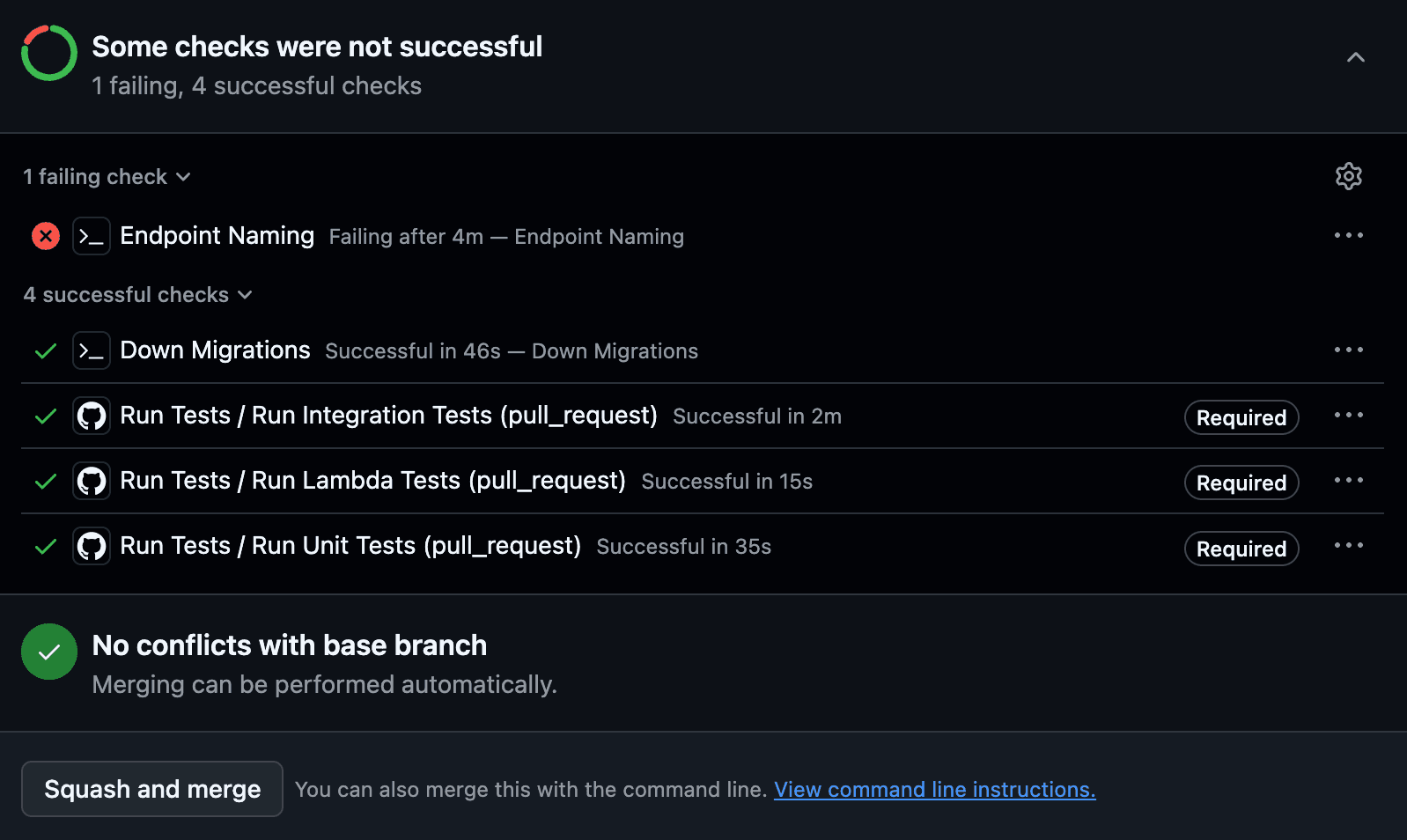 Once the automation is live, it runs automatically on every PR. The check appears alongside your unit tests and integration tests. Mark it as required in your branch protection settings and a failing check prevents merging, the same as any other required check.